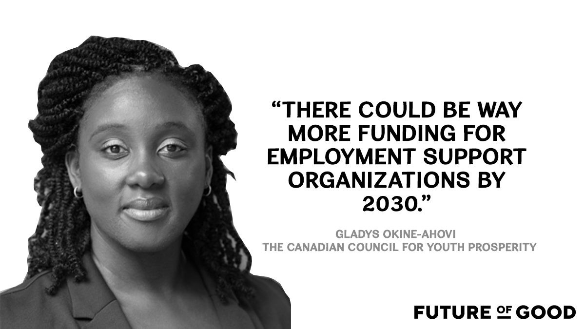 In the workforce development world, where Gladys Ahovi works, social impact isn’t a general practice. By 2030, she hopes that changes. “I think the pandemic is forcing a lot of people to think about community impact and social impact very differently than they have traditionally,” she says. Ahovi believes philanthropic organizations will start contributing to more workforce development by funding employment support programs and organizations. Banks such as RBC are already funding these types of initiatives, Ahovi says. Meanwhile, the movement against racism throughout this year called out the systemic lack of support for Black and Indigenous workers, a move Ahovi says has resulted in additional funding for employment support for marginalized communities. “I think we will continue to see that level of public accountability, not only in terms of addressing incidents of wrongdoing, but addressing the lack of investment, [and] undo harm that’s been caused for many, many years,” she says.