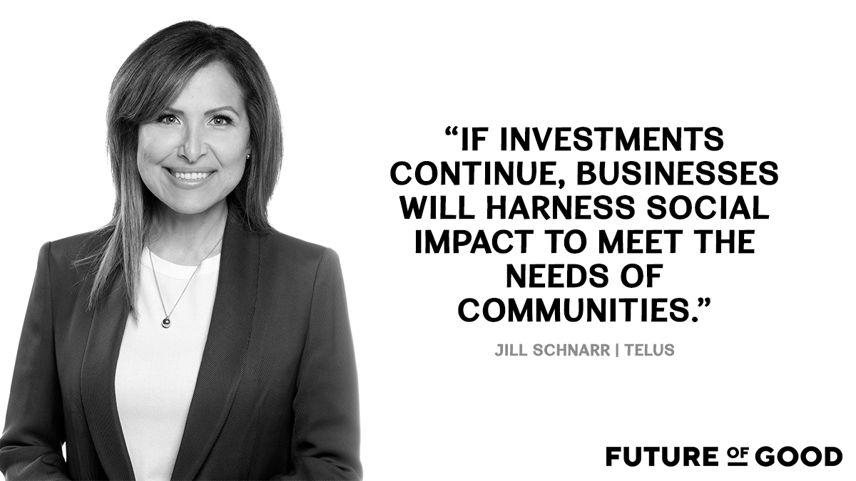 As a major corporation, TELUS is keen on profit. But Jill Schnarr says it is also focused on building social purpose opportunities. In an email to Future of Good, she says the social impact sector and business aren’t mutually exclusive. Social impact businesses can produce food sustainably or reduce humanity’s environmental footprint while also generating a profit. “Creating socially responsible companies and products should be the goal of all businesses,” Schnarr writes. In the next 10 years, she believes social innovation won’t simply be an offshoot of innovation — they’ll be seen as one and the same, with businesses routinely getting involved in social impact. TELUS intends to be part of the race, too. “We are addressing social issues to drive improved social, digital, and environmental outcomes, through investments that bring socially innovative products and services to market,” Schnarr says.