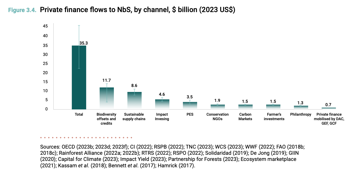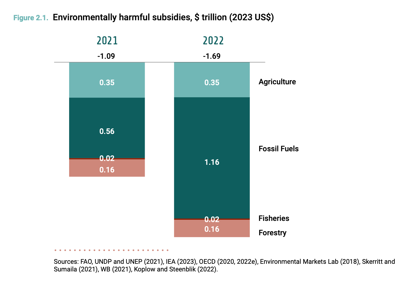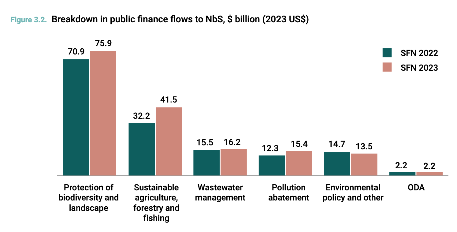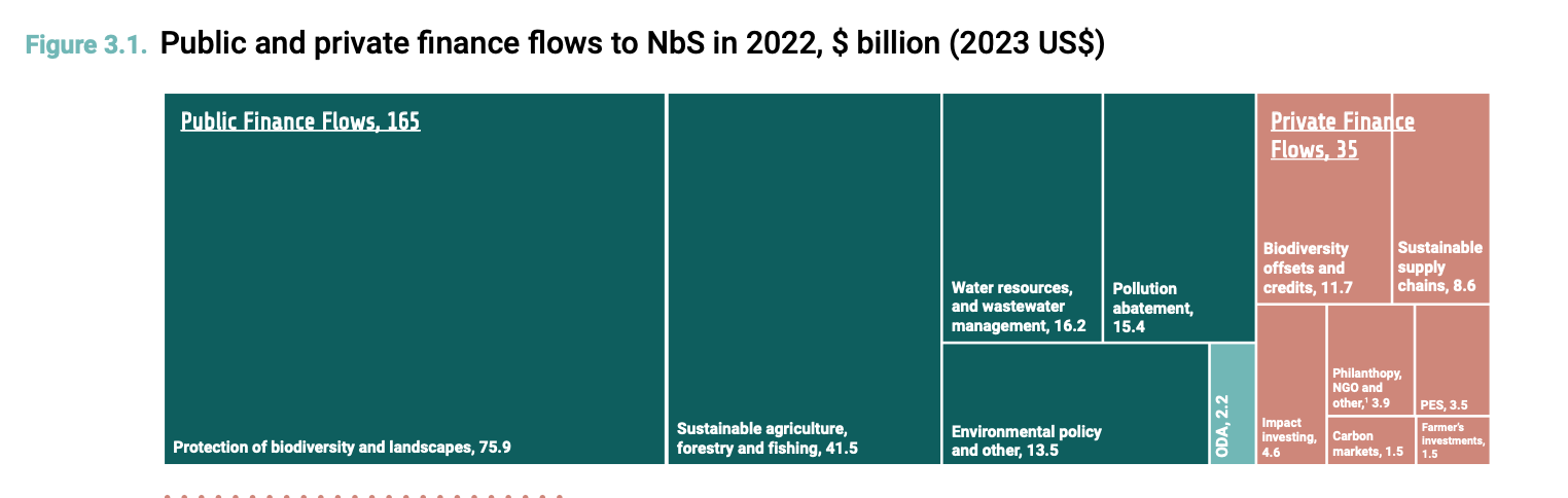 Below: Tracked nature-negative public finance flows, like environmental harmful subsidies, are more than 10 times greater than public finance flows to NbS.