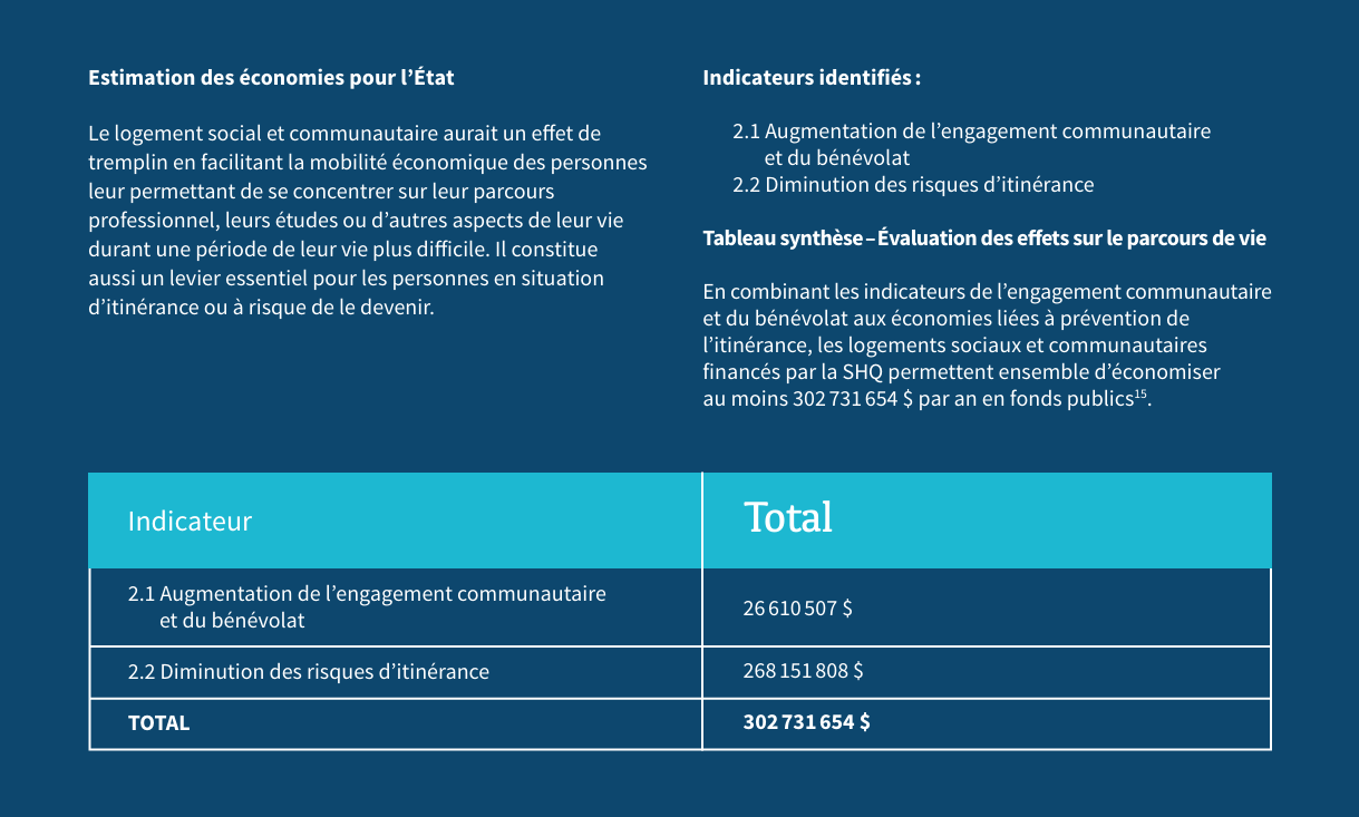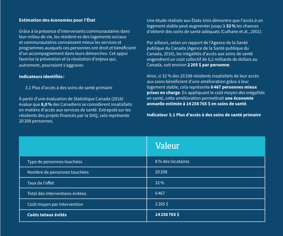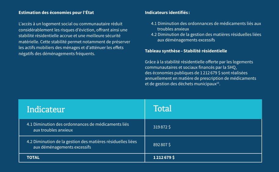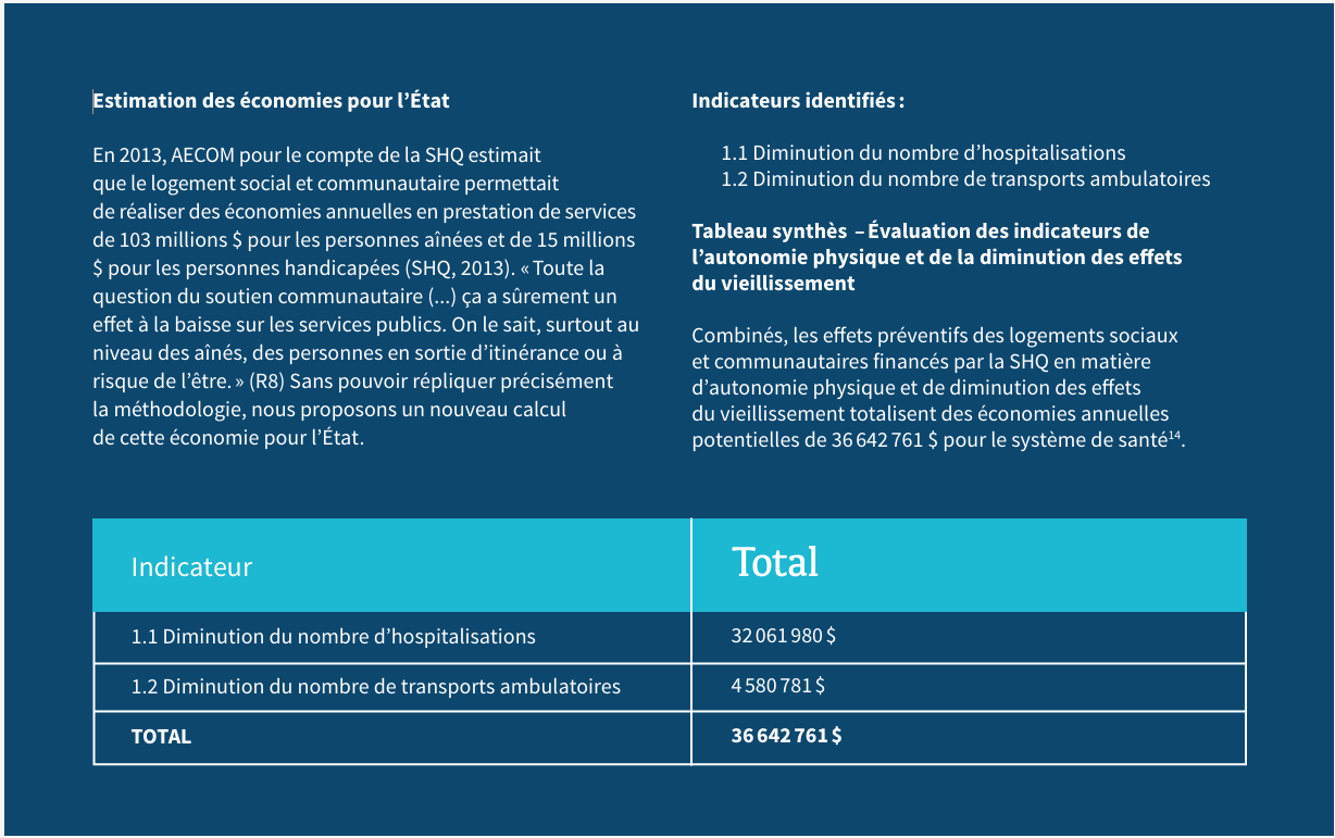 Direct and indirect savings of investing in social housing in Quebec. (French version supplied.)