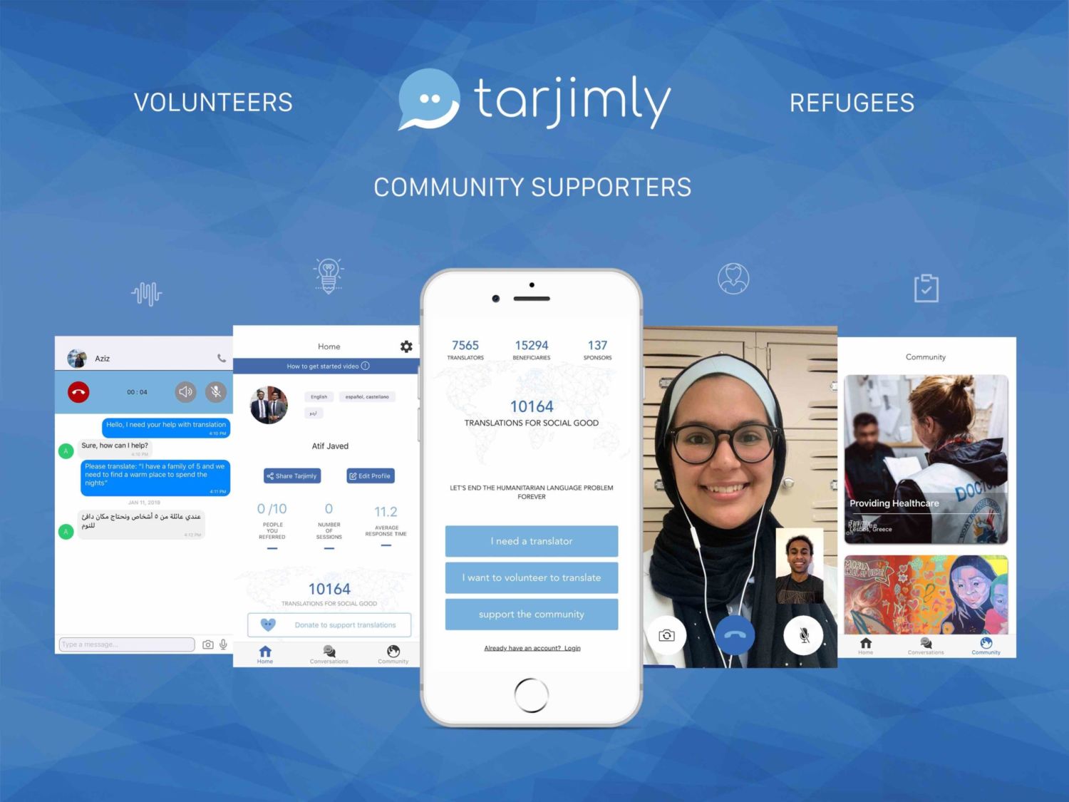 Originally designed in 2017 as a response to the Syrian refugee crisis, the Tarjimly app allows multilingual speakers from around the world to volunteer as translators and interpreters on demand for displaced people.