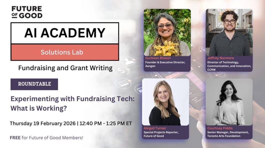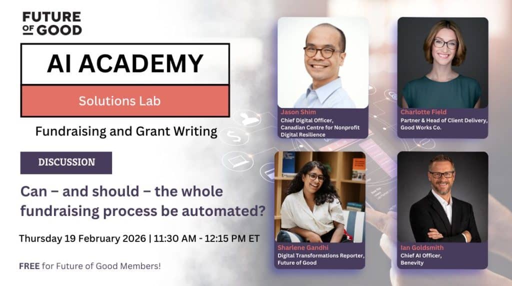 Fundraisers are starting to experiment with automation and predictive analytics in some parts of their process, from donor prospecting to writing grants to producing marketing materials and content. Some may be doing so off the side of their desks, while others could be coming up with more formal processes for where AI can slot in. Hear from Good Works Co., the Canadian Centre for Nonprofit Digital Resilience and Benevity on what they’re observing is happening in the fundraising landscape.