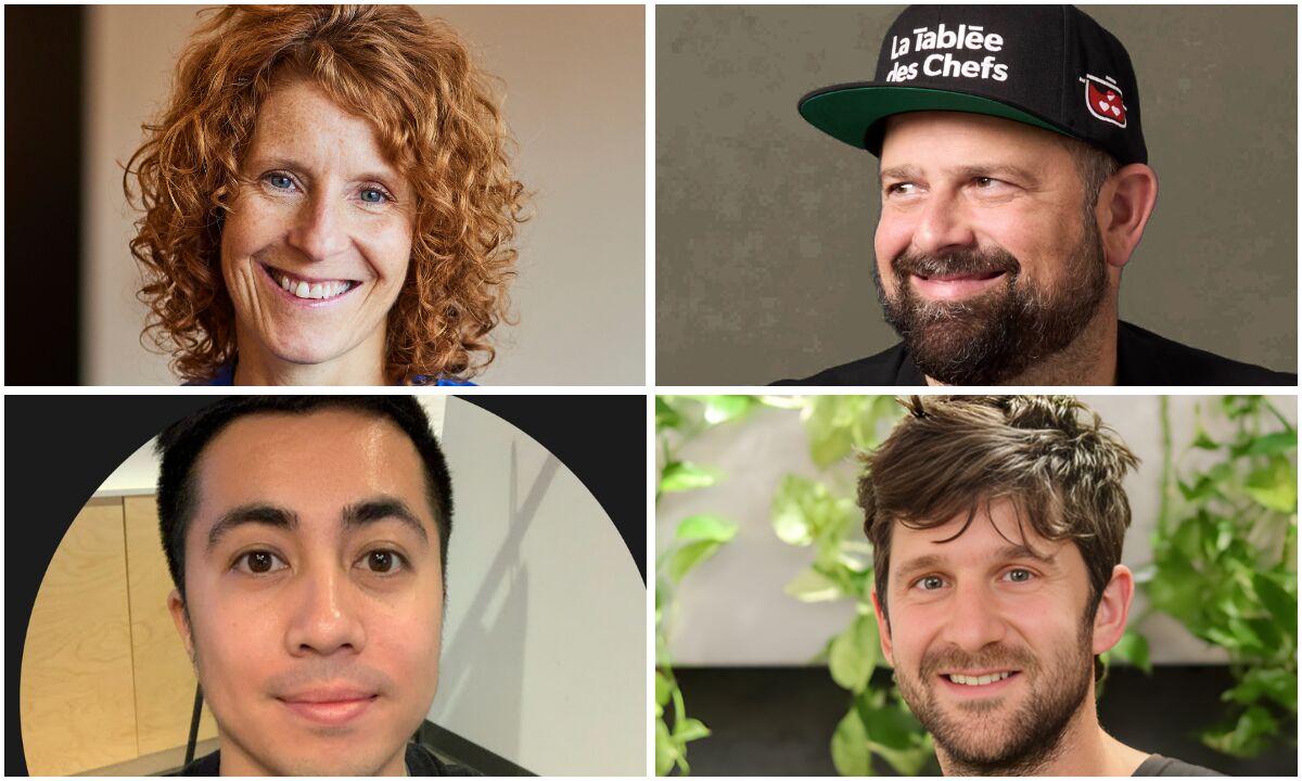From top left: Judith Barry, co-founder of the Breakfast Club of Canada, Jean-François Archambault, Founder, La Tablée des Chefs, Ken-Melvin Bejer, Communication Coordinator for The Coalition for Healthy School Food, and Thibaud Liné, GM, La Cantine pour tous. (Collage by Future of Good/Supplied photos.)