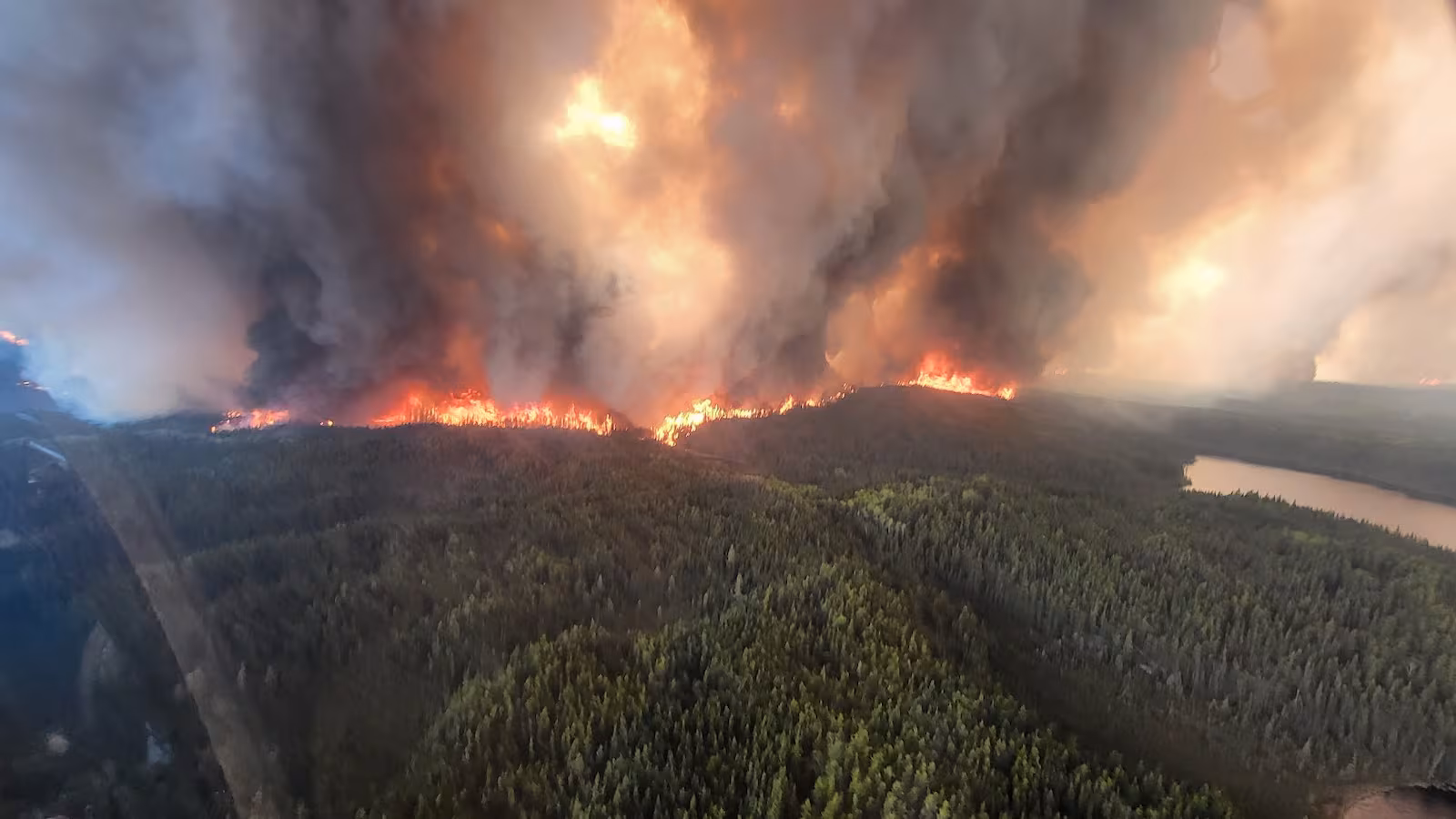 Fire WE017 near Sherridon, Man. on May 27, 2025. The fire has combined with the inferno blazing near Flin Flon, Man., making it the largest in the province and more than seven times the size of Winnipeg. (Province of Manitoba/Supplied.)