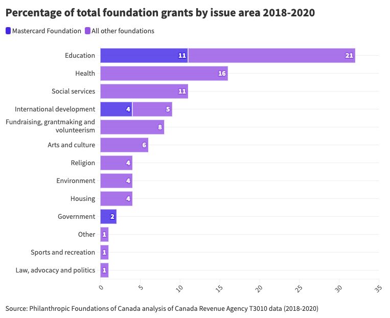 Between 2008 and 2021, the Mastercard Foundation, Canada’s lone mega-foundation, increased its assets by more than $37 billion—from about $2 billion to $39 billion.