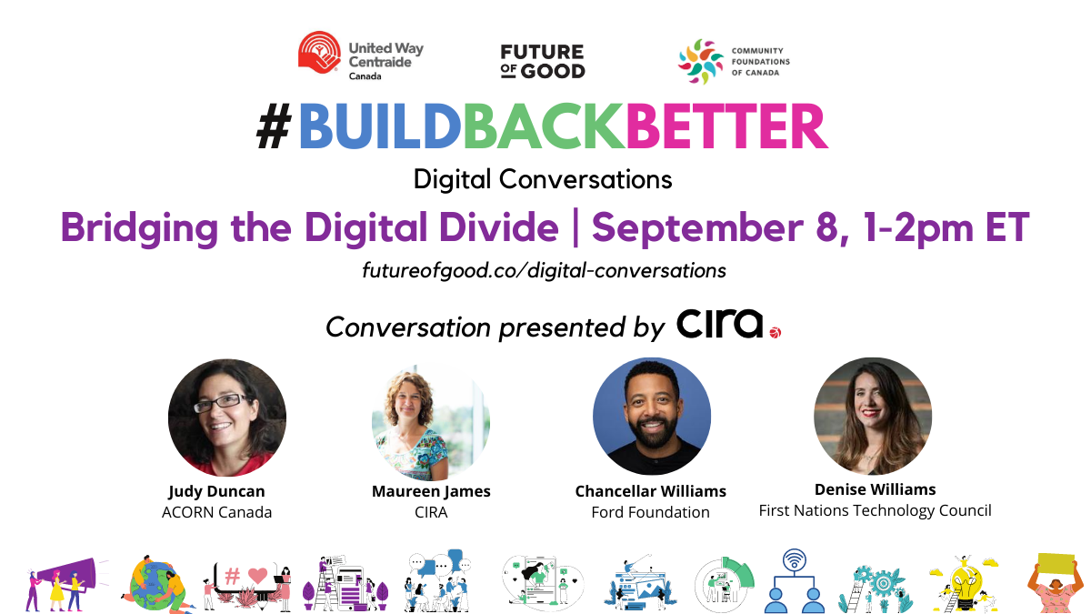 Future of Good is proud to announce a multi-format content partnership with the Canadian Internet Registration Authority (CIRA). Over the fall, through plenary talks, webinars, and digital stories, we’ll explore systemic barriers to digital access, illuminate promising initiatives, and dive into how the philanthropic sector can lead the charge on addressing Canada’s digital divide.