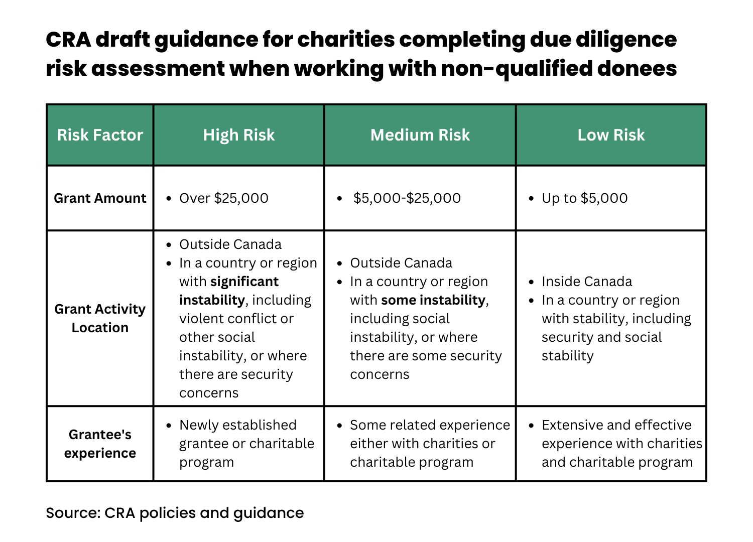 CRA’s draft guidance recommends a $25,000 grant be considered “high risk” when a grantmaker is working with a non-qualified donee. (Graphic: Gabe Oatley)