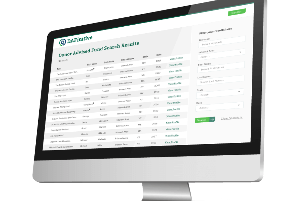 DAFinitive is a new prospect research tool providing fundraisers with information on DAF holders. The platform currently features information for 8,000 Canadian DAFs across seven foundations, including MakeWay, the Calgary Foundation and the Vancouver Foundation.