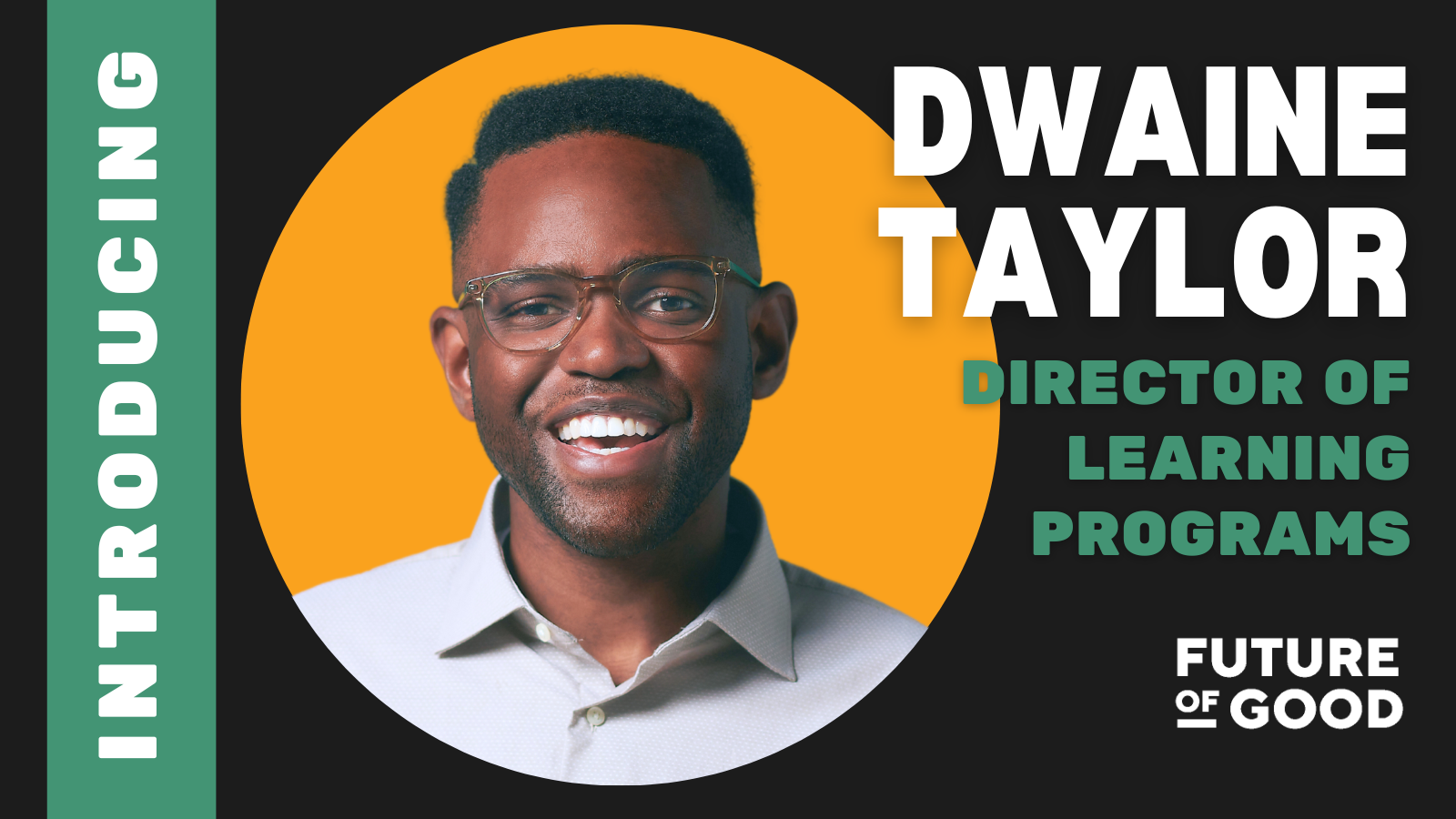 I’m thrilled to announce Dwaine Taylor is joining the Future of Good team as Director of Learning Programs.