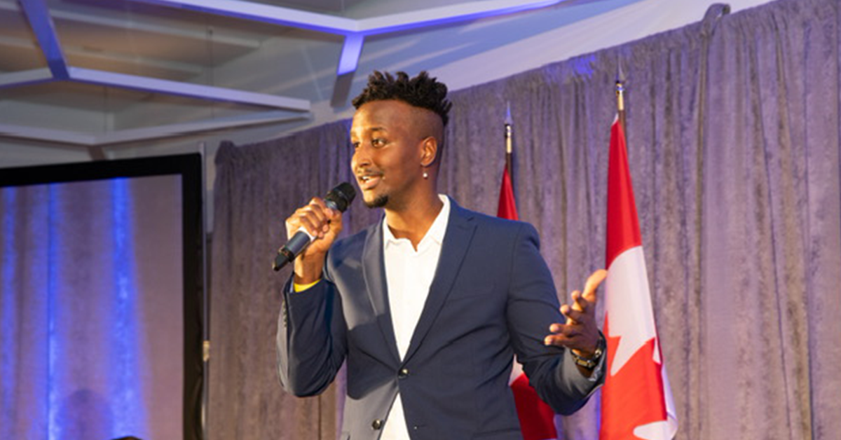 Tyler Boyce, executive director of the Enchanté Network, speaking at the federal government’s official 2023 Black History Month celebration on February, 8, 2023 in Ottawa, ON. (Courtesy: Tyler Boyce)