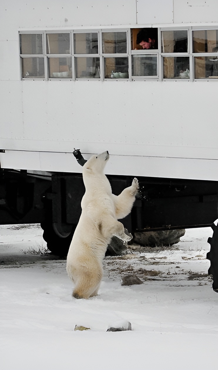 Tundra Buggies allow passengers and researchers to get close to polar bears safely on the rough Arctic terrain. Elisha Dacey/Future of Good