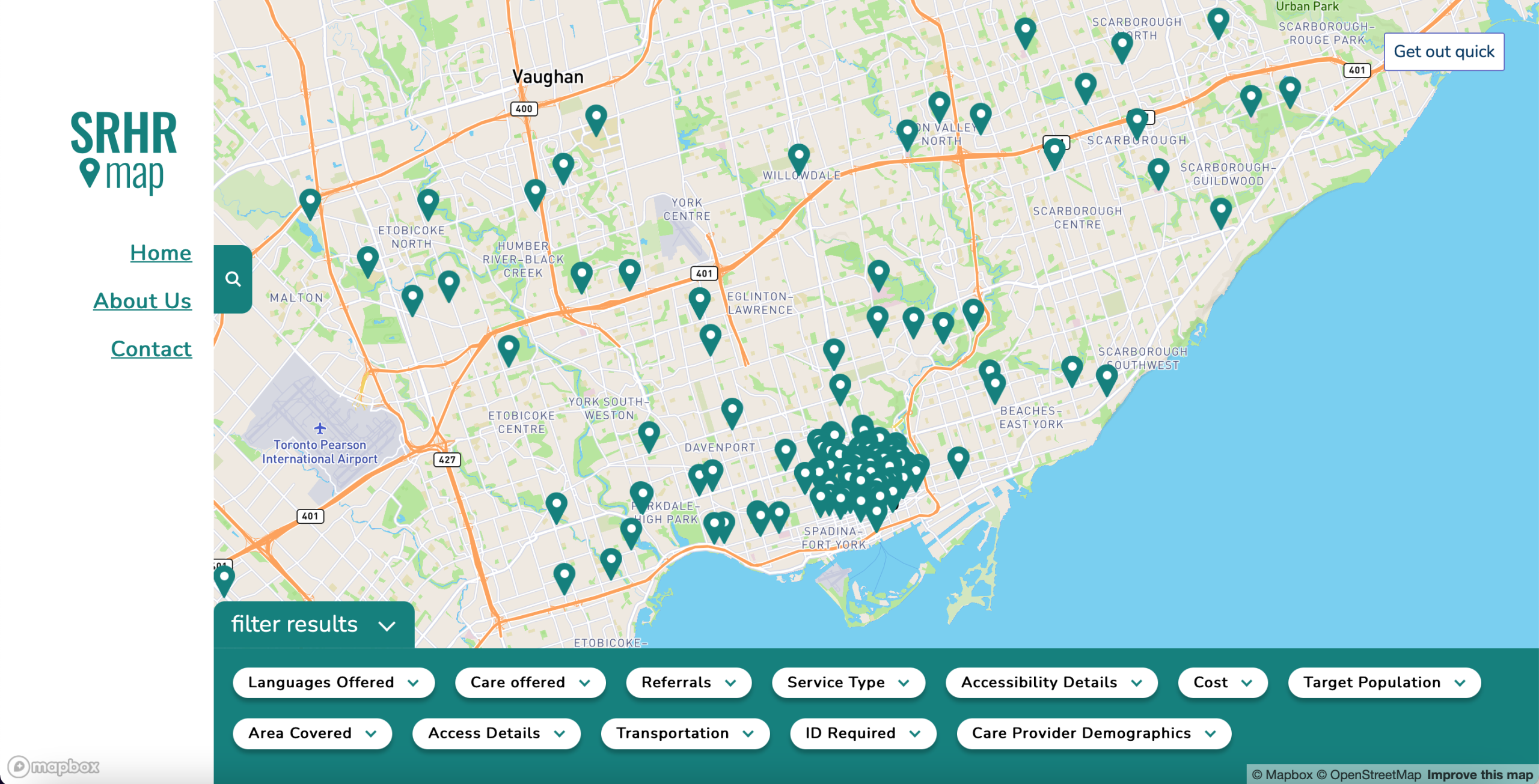SRHR Hubs’ digital resource, a map of sexual and reproductive services, was inundated with messages to the point where it had to shut down. (Screenshot)