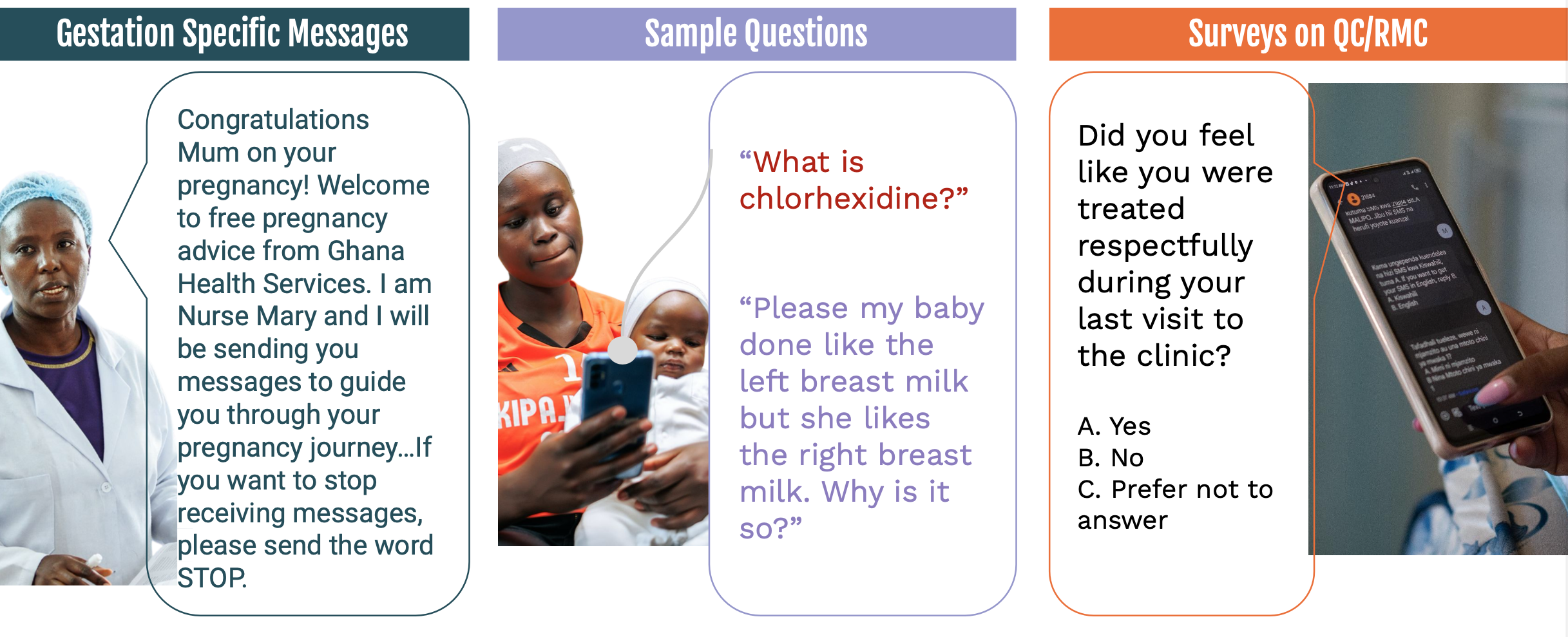 The program’s internal evaluations show positive feedback from mothers. “They always send me messages, and I reply. Sometimes, when I ask questions, they reply. So, it is very easy,” responded one woman in antenatal care at Tema General in Tema Metropolis.