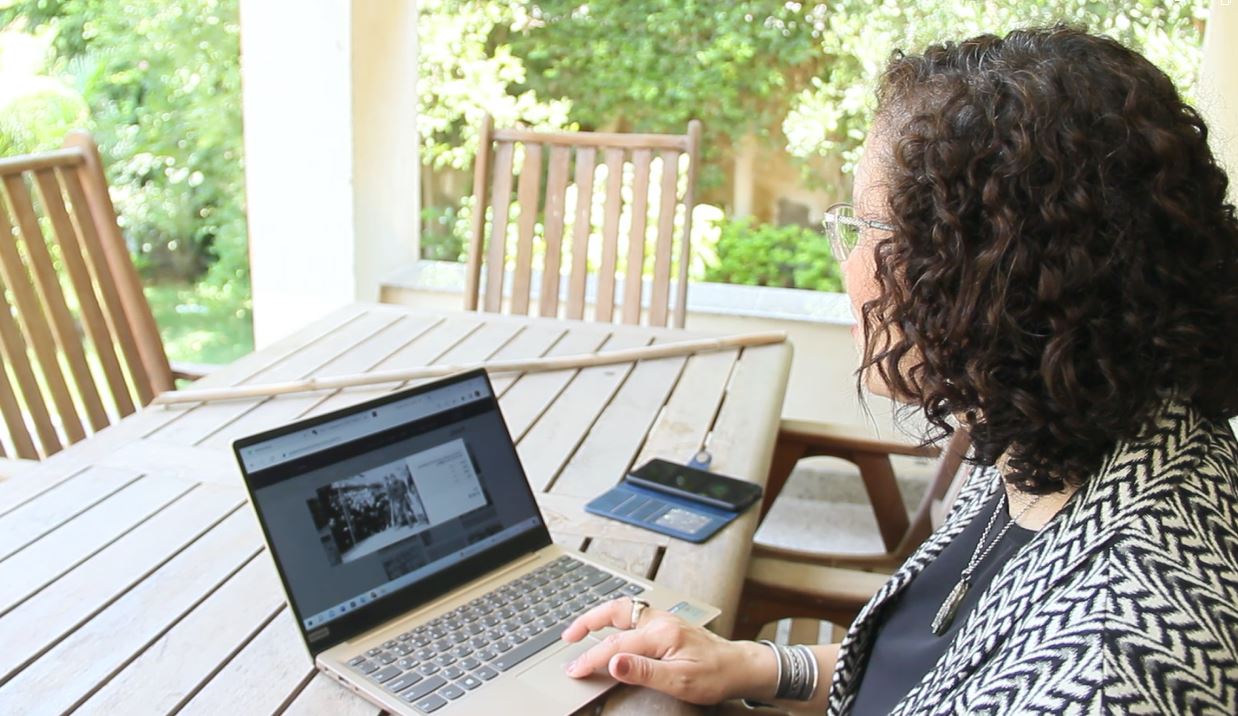 Samar Dwidar browses the Palestinian Stories website in Cairo, Egypt. (Samar Dwidar/Supplied)