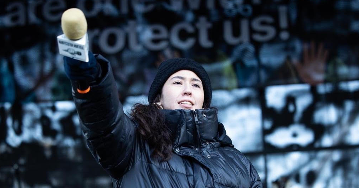Ashley Torres speaks to the crowd on Dec. 10, 2022 at the march for biodiversity and human rights in Montreal. Torres was a founding member of LPSU, a grassroots student movement that was a driving force behind the 2019 climate justice protest. (Credit: Toma Iczkovits)