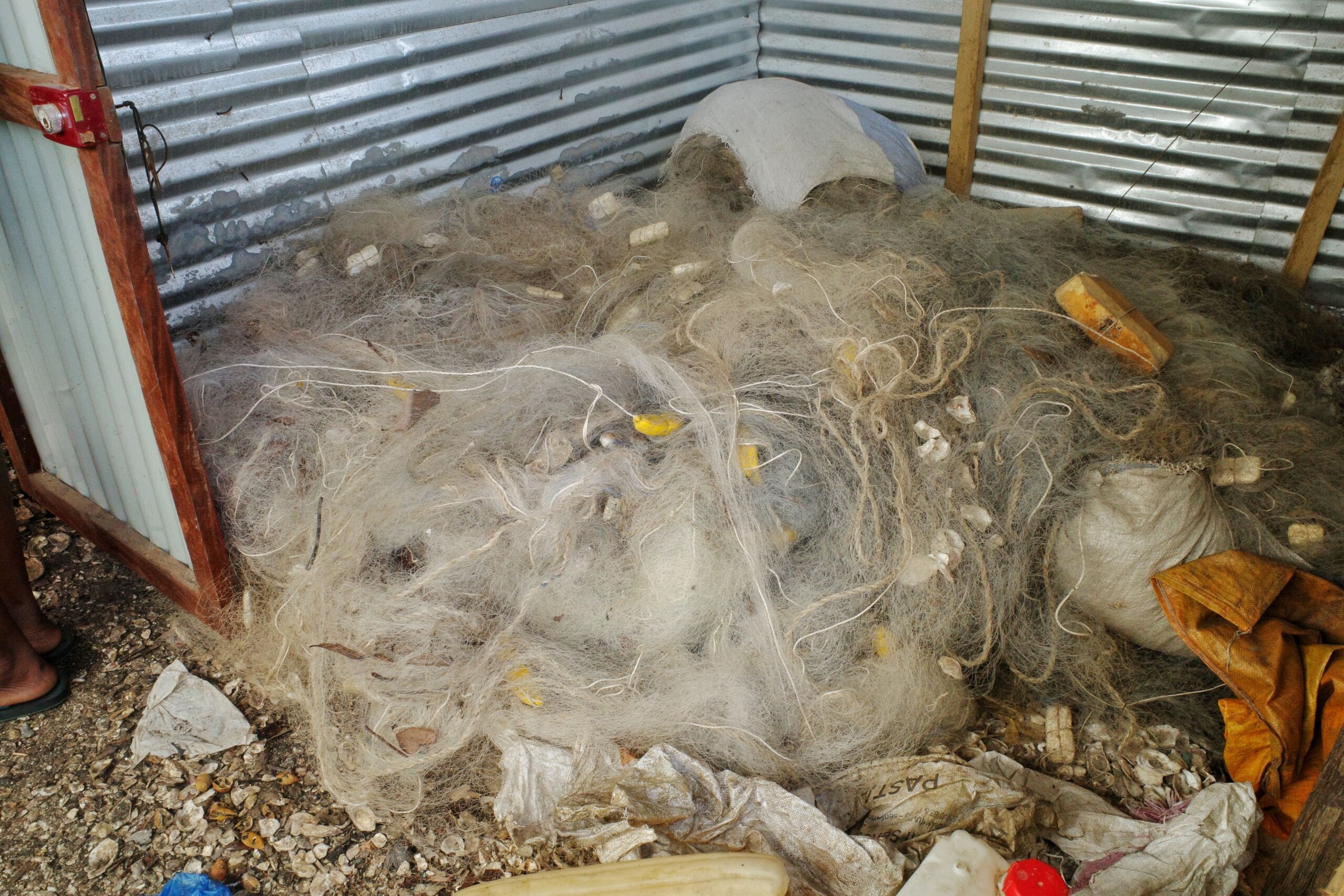 These fine mesh nets, used illegally, capture juvenile fish and damage the ecosystem. Kawawana volunteers confiscate and destroy them. (Jahanzeb Hussain/Future of Good)