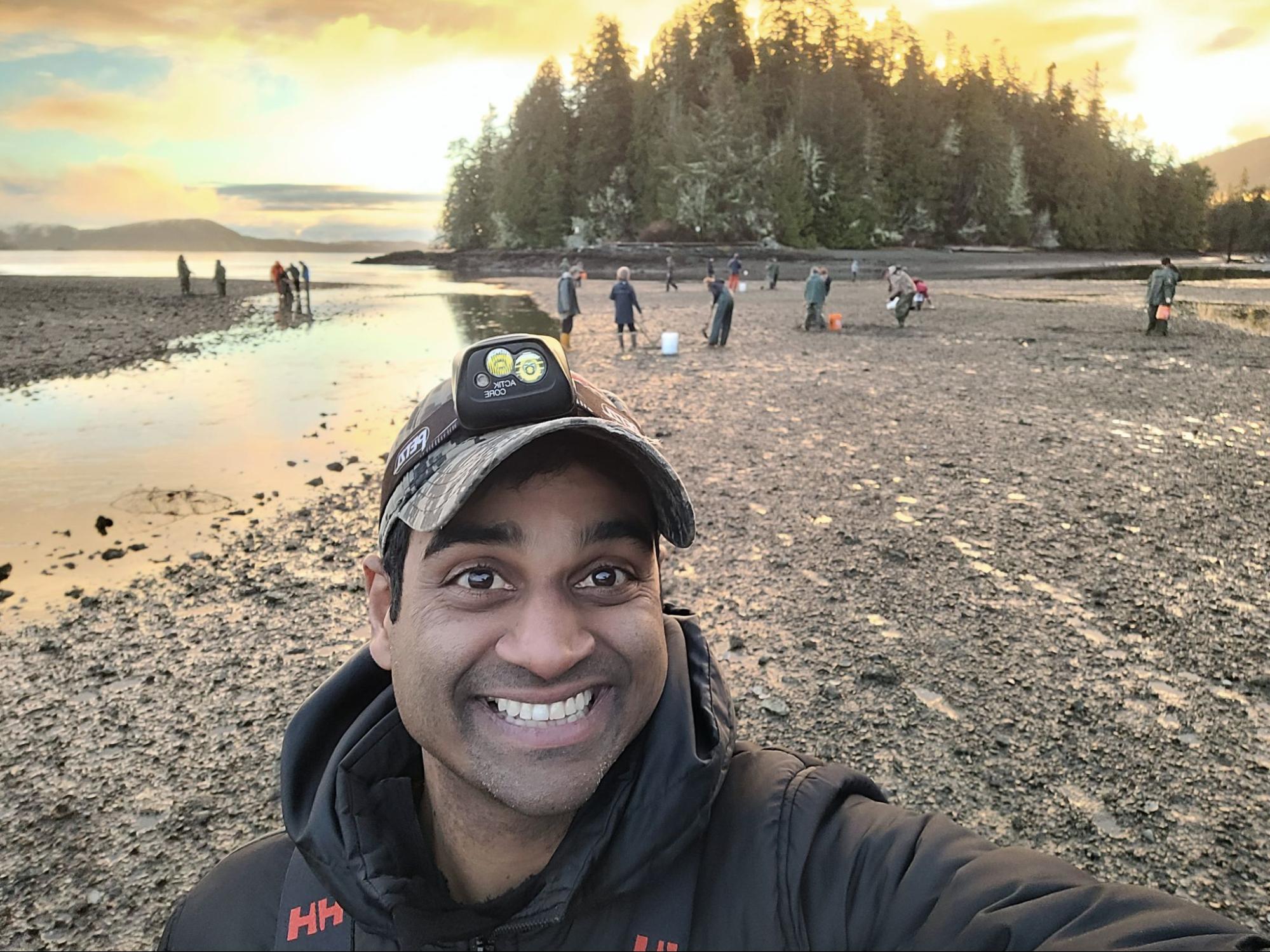Dr. Ricardo Manmohan, coordinator of the Nuu-chah-nulth Warriors program, clam digging in BC in January, during the lowest tide of the year. (Courtesy: Dr. Ricardo Tranjan)
