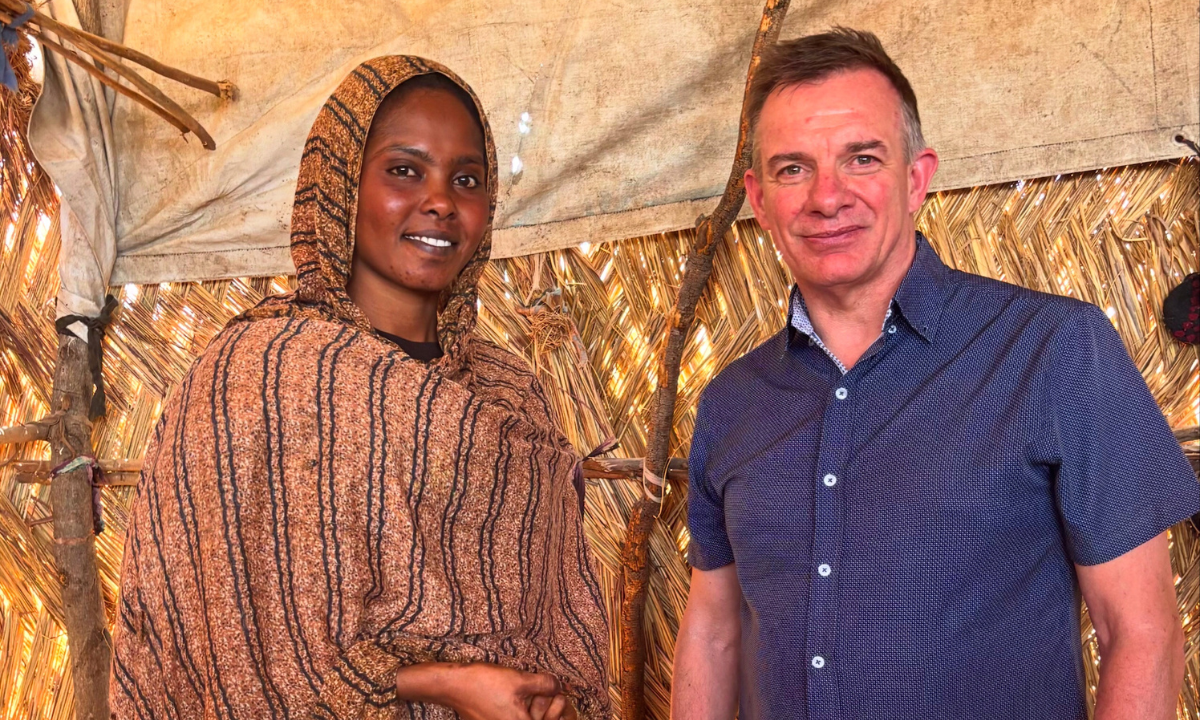 Caption: Canadian Foodgrains Bank executive director Andy Harrington stands with Mariam, who he met while visiting a refugee camp in Aweil, South Sudan. At 25 years old, Mariam fled the violence of Sudan after losing family members to the brutal war. Yet, she still holds onto the hope of a better future – not just for herself, but for people around her. (Supplied photo)