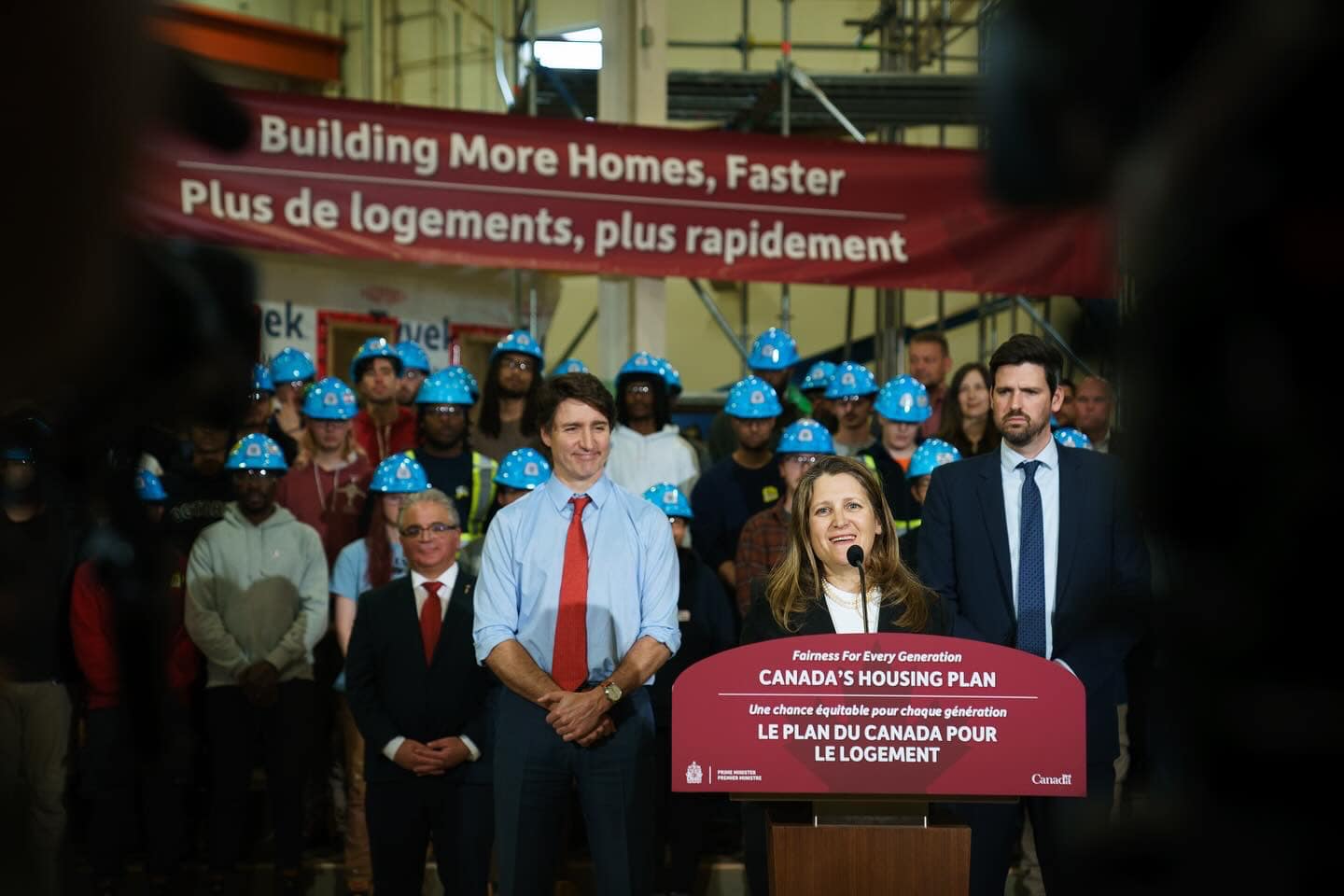 Finance Minister Chrystia Freeland announces the government’s housing plan in April 2024. The housing plan is a central plank of the government’s 2024 federal Budget. (Chrystia Freeland/Facebook)