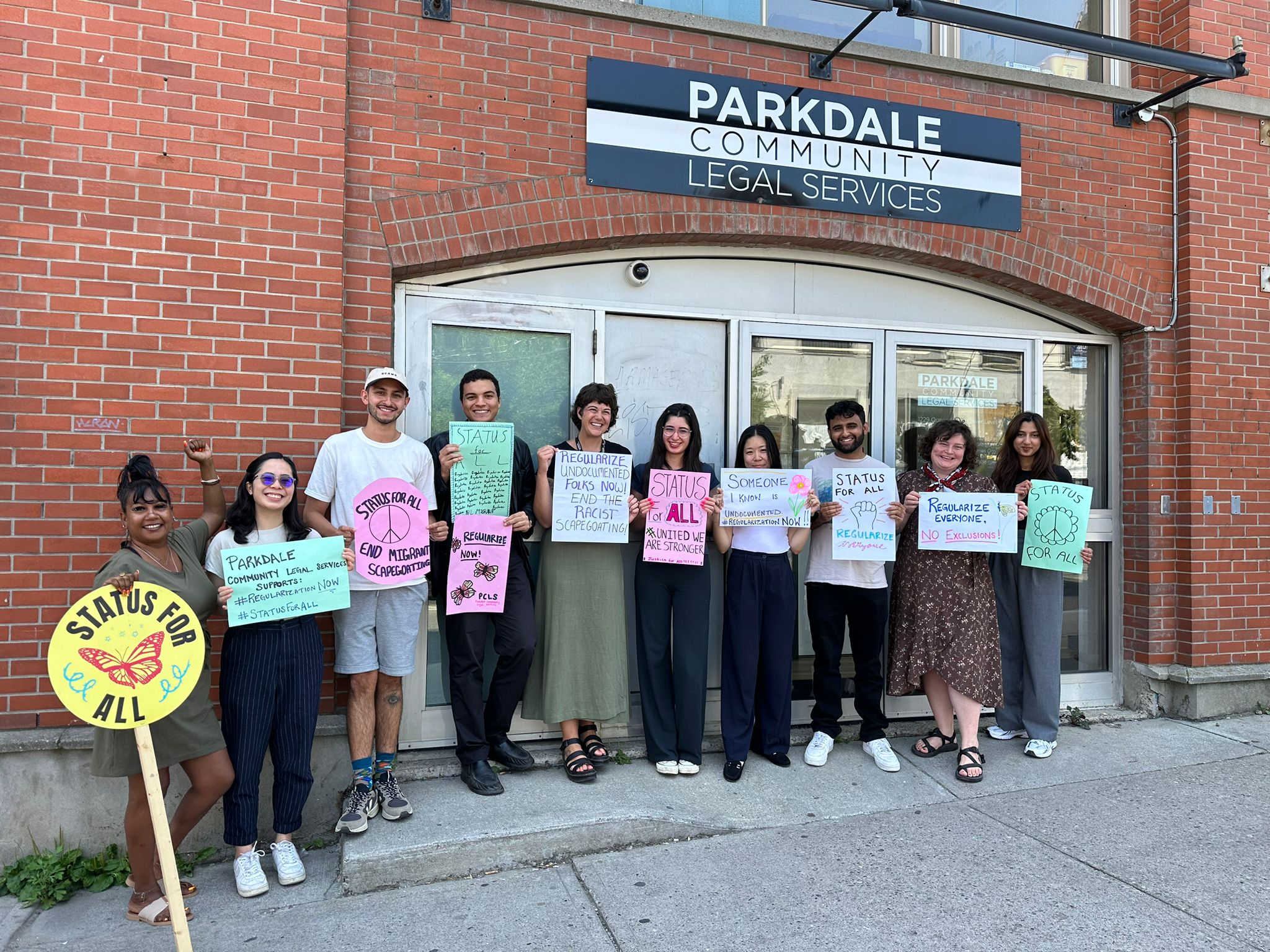 Image Caption: Staff at Parkdale Community Legal Services in the city’s West End participate in a demonstration in support of undocumented newcomers (Facebook)