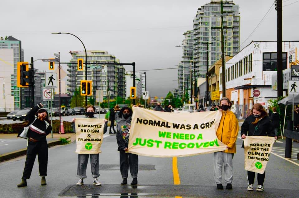 Last year, Sustainabiliteens demanded a stop to the Trans Mountain expansion (TMX) pipeline, held a blockade, and painted a mural in front of an insurance company that supported the TMX pipeline. They are currently mobilizing their organizers to push banks to divest away from fossil fuel infrastructure by holding rallies in downtown Vancouver.