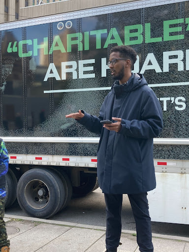 Standing in front of a campaign tractor trailer, in Nov. 2021, Yonis Hassan, executive director of the Justice Fund, a Toronto-based non-profit, argued that Canada’s foundations need to “move the money” and must stop “hoarding” over $85 billion in assets.