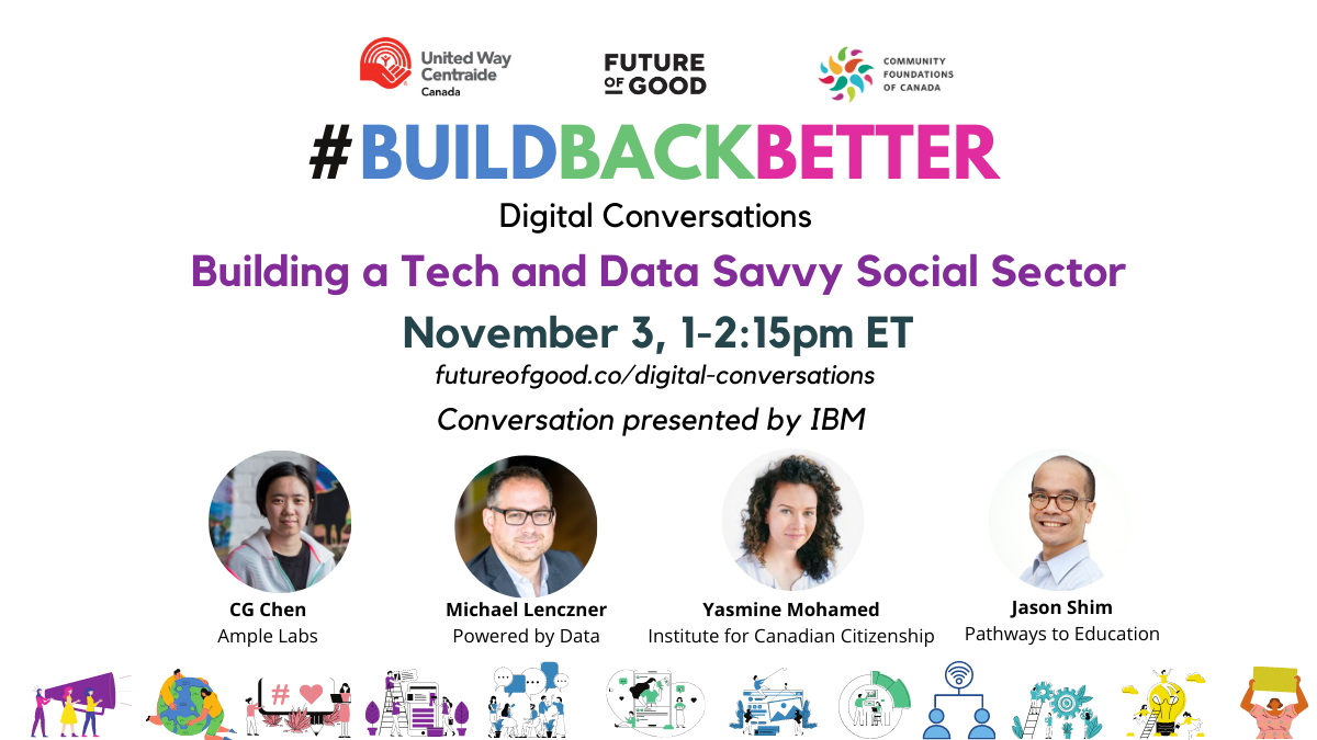 The social impact sector has no choice but to become more tech and data savvy, and we can’t wait to dive into this more with IBM Canada, our visionary sponsor at the Future of Good Summit on Nov 25-26. IBM Canada is collaborating with Future of Good to co-create impactful digital content between Nov 2020 and Jan 2021, and will kick off with our #BuildBackBetter digital conversation on November 3rd to explore how communities across Canada can benefit from a tech and data-savvy social sector.