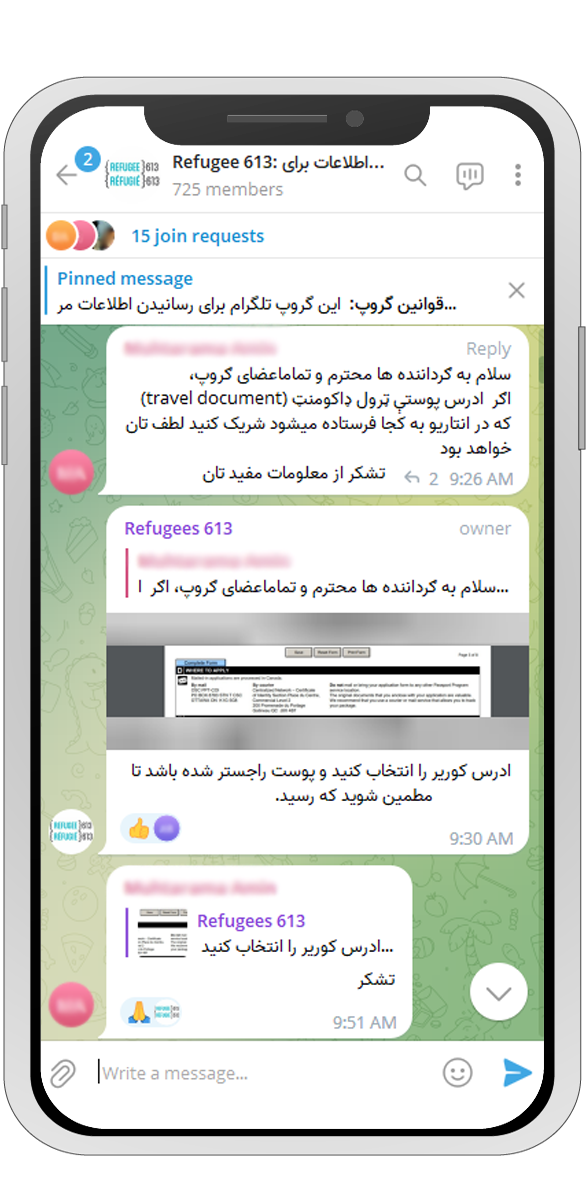 Today, there are over 750 refugees, spread across eight Canadian provinces, in the Telegram group that Refugee 613 launched in March 2022. Many are using the group to pass critical information onto friends and family outside the group, and the group is moderated by both staff and volunteers due to the influx of queries.