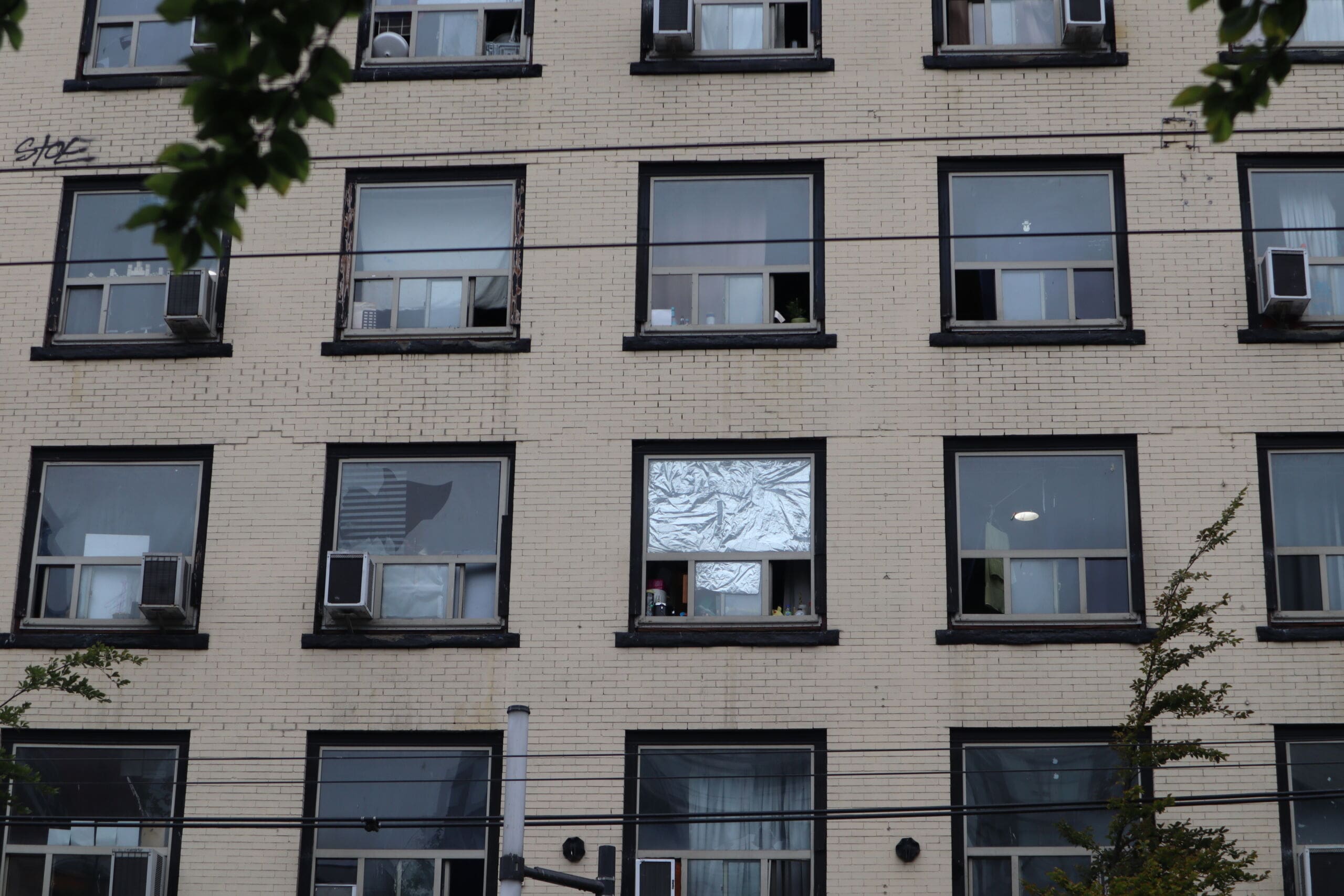 A close-up of the windows into a social housing unit slated for removal on Granville Street. (Abigail Turner/Future of Good)