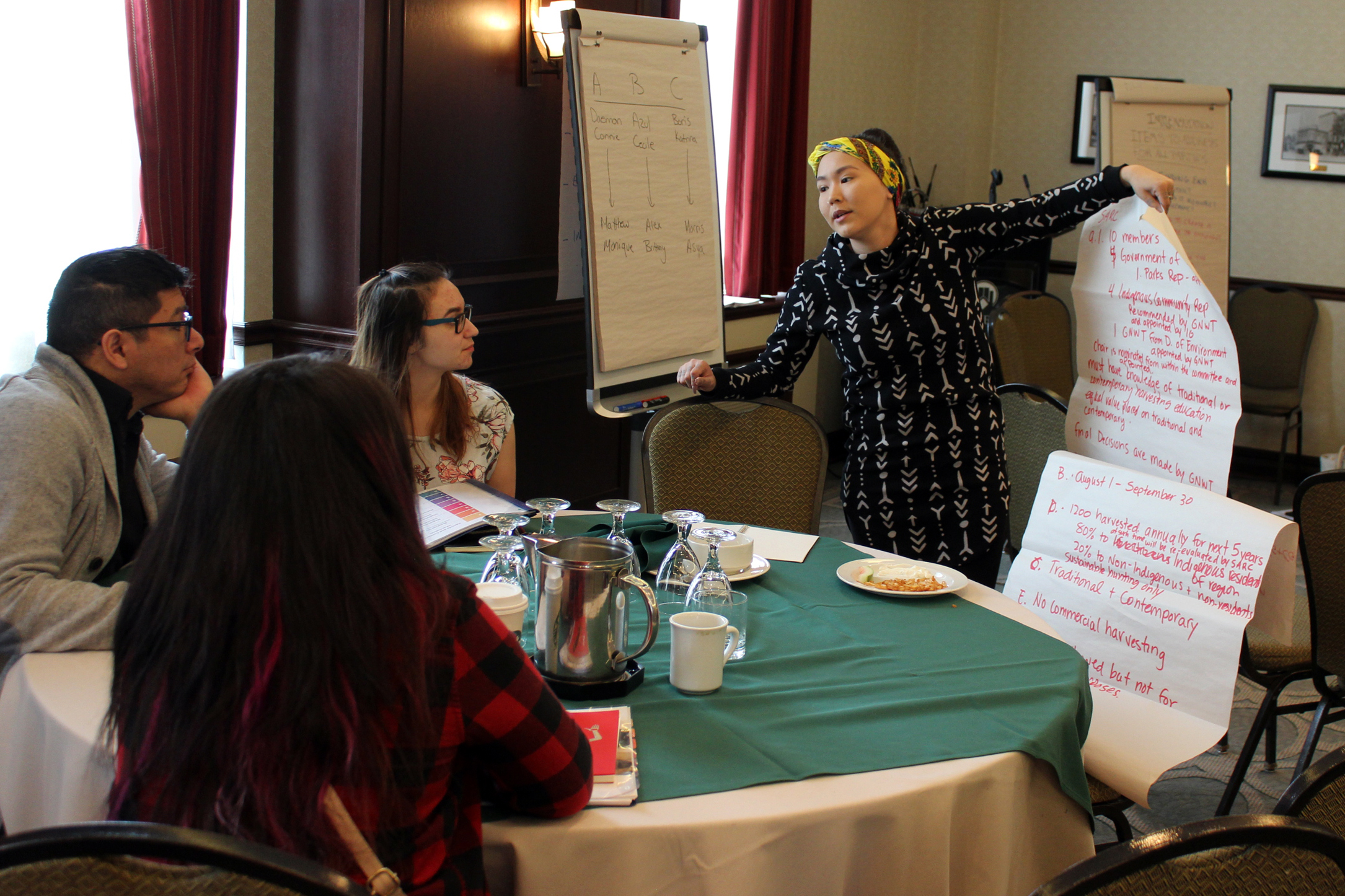The simulation started on the second day with the negotiation of a section of a mock treaty dealing with wildlife harvesting and management. Participants had to come to an agreement on how to harvest and manage species that were possibly at-risk. On the third day, they changed groups and negotiated a plan for implementing the mock agreement developed by another group. In doing so, they experienced a common real-life challenge where high turnover of negotiating teams makes for a slower and complicated implementation process.
