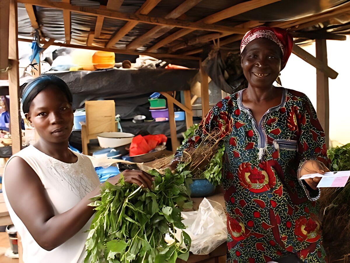 A woman could buy fresh greens from a local vendor thanks to a CVA in Côte d’Ivoire run by CALP several years ago. (CALP/Supplied photo)