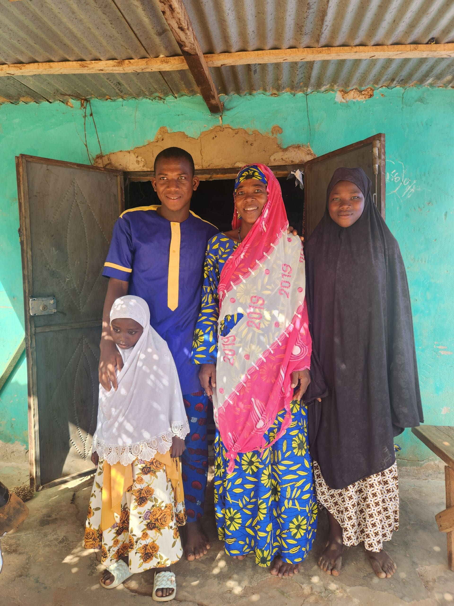 A woman with her family outside the shop she opened thanks to microcredit from AVEC. (Jahanzeb Hussain/Future of Good)