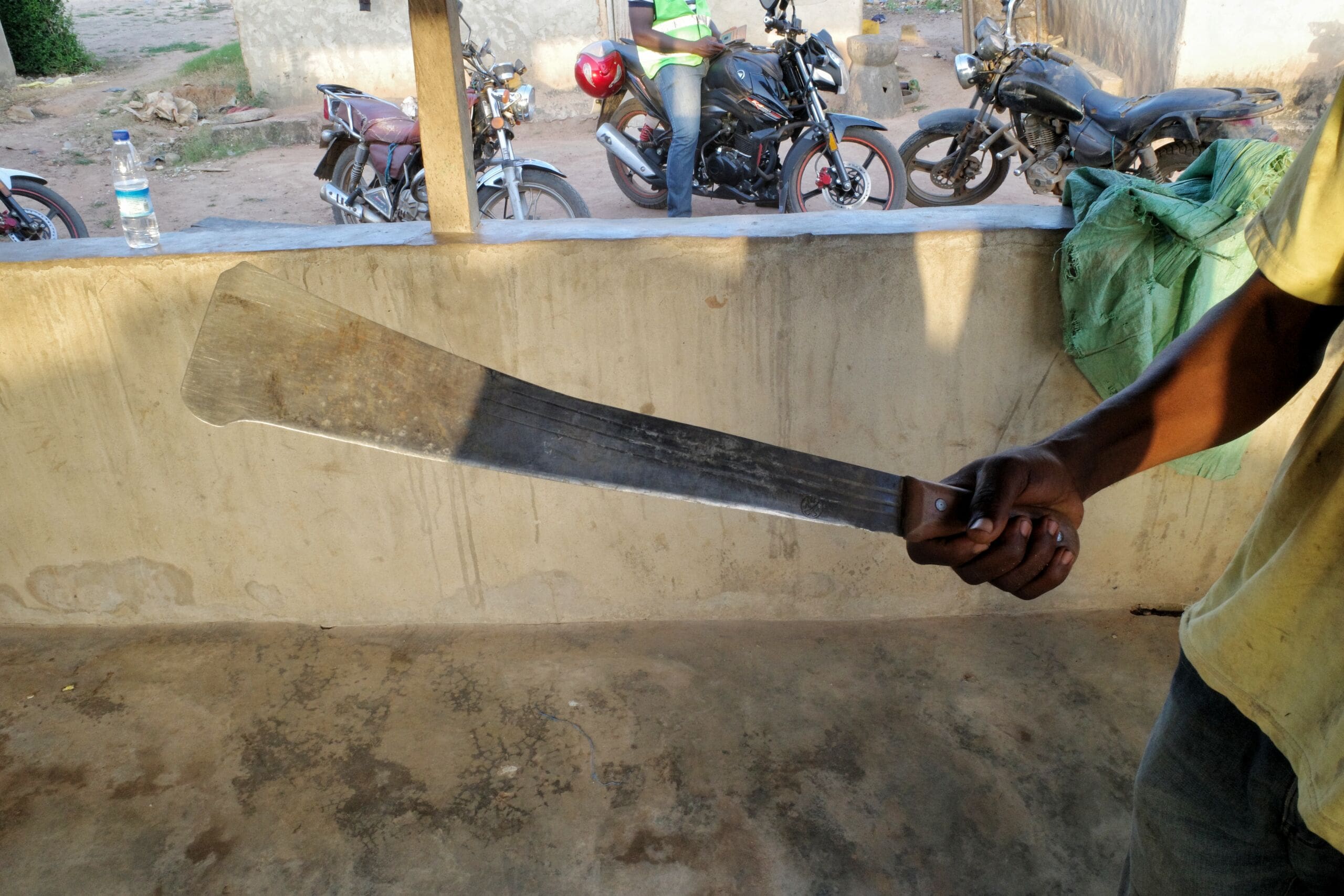 A villager shows a machete used in cacao farming. (Jahanzeb Hussain/Future of Good)